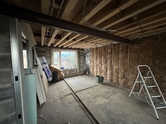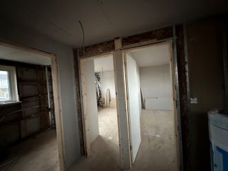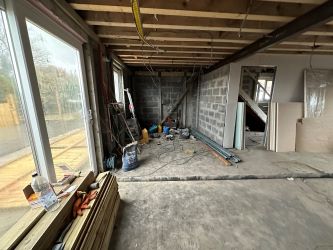 Three bedrooms, room for bathroom, open plan living space.
