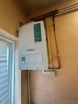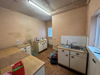 KITCHEN: 11’06(max) x 10’06(max) - L-Shaped – Fitted with a range of base and drawer units, incorporating stainless-steel sink and drainer. Space for gas cooker, uPVC double glazed windows to rear and side, uPVC door leading to back garden, GCH boiler (approx. 18 months old).