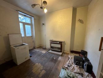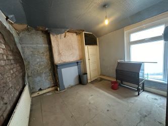 RECEPTION ROOM TWO: 11’03 x 9’10(max)/10’01– uPVC double glazed door to rear leading to unfinished lean to, radiator, and fireplace.