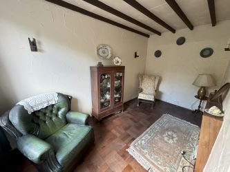 SITTING ROOM: 2.13 x 4.09 - Ceiling beams, uPVC double glazed window, radiator, wooden parquet flooring, wooden decorative fireplace.