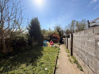 EXTERNAL: Enclosed rear garden with steps from back door. Lawned area and concrete patio/path. Brick shed/garage area. Rear access which can be accessed by car.